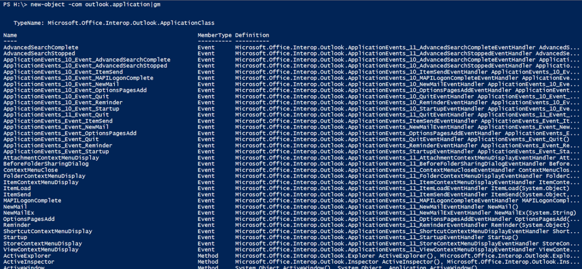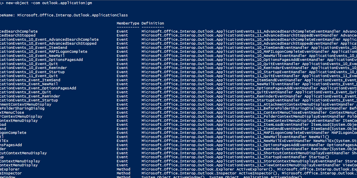 $outlook = new-object -com Outlook.Application