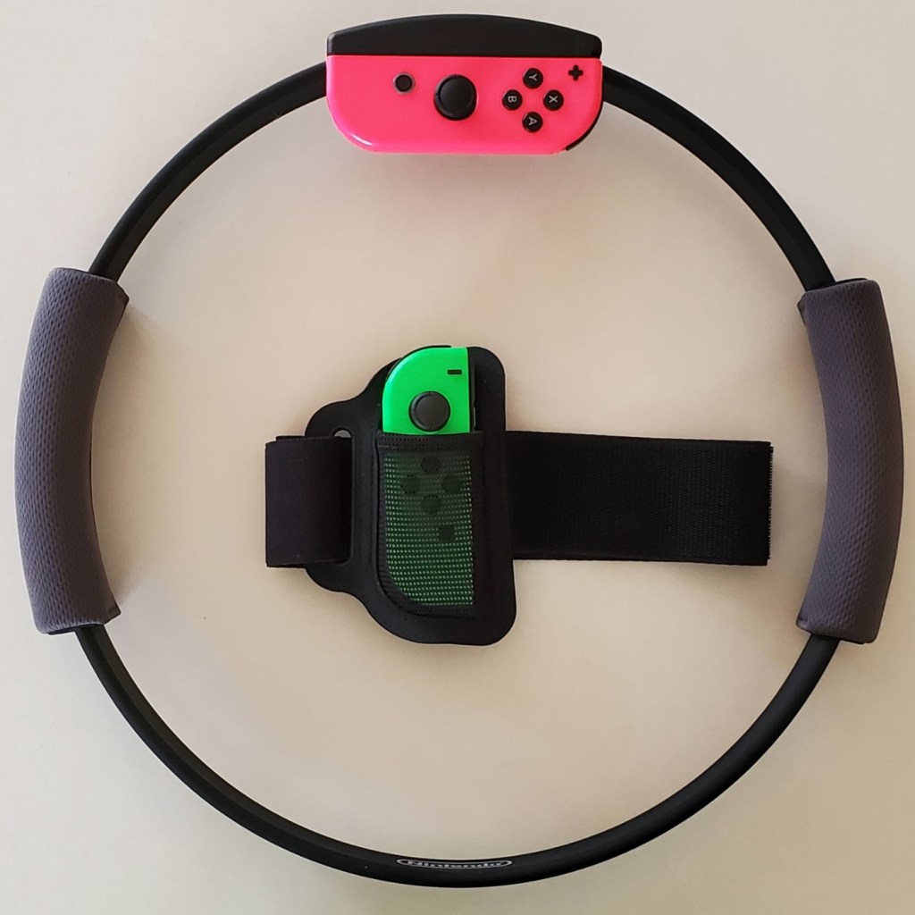 The Ring Fit was $69.00 at our local Walmart. If you have ever used a resistance ring in Pilates class, you will instantly recognize the Ring Fit hardware. You attach a Joycon to the ring and insert the other one into the included leg strap.