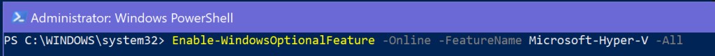To get started, you’ll need an Ubuntu VM to work with and we’ll need to install Hyper-V if you haven’t already. Open PowerShell as an Administrator and install the Hyper-V components. Run: Enable-WindowsOptionalFeature -Online -FeatureName Microsoft-Hyper-V -All