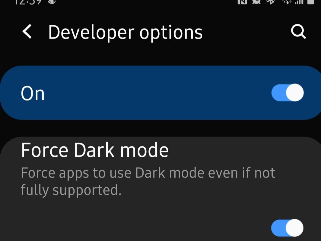Now close all of your open apps and open the settings menu again. Scroll all the way to the bottom and tap Developer Options. Scroll down until you see Force Dark Mode and tap it to enable the option. Open Facebook, Linked In, Amazon Shopping, or any other app that used to have a white background and embrace the darkness. This is an experimental feature and you are using it at your own risk. I haven’t had any issues with it yet on my Galaxy Note 20, if you do post the problem you ran into in the comments.
