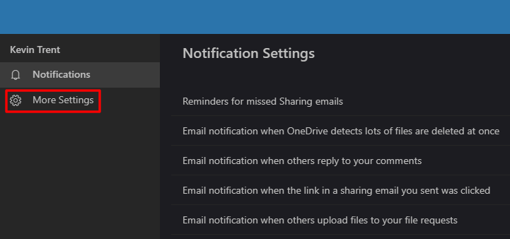 In the OneDrive Title Bar click the settings icon (gear on the left)