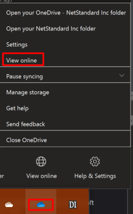 Find the OneDrive icon in your system tray (next to clock) right-click on the icon and then select View Online from the menu.