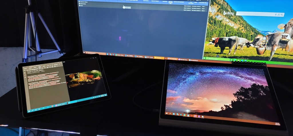 Almost every morning before I climb out of bed I grab my Go off the nightstand and check Outlook, Teams, the weather, and my company’s line of business apps to see if there are any emergencies and wrap my head around the day’s work. I don’t have to type any passwords. I just click the power button and the Windows Hello camera recognizes me, even in the darkened room with my crazy bed-head. I pull the pen off it’s magnetic spot and answer or fix anything that requires immediate attention. This is easy because all of the apps are open at once and I’m already on the VPN. If I didn’t hit snooze too many times, I usually check the news before I head to the gym where the Go server as a perfect video screen on the machines.