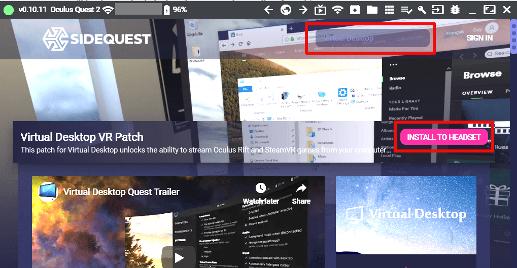 - Install the Virtual Desktop Steam VR add-on from SideQuest