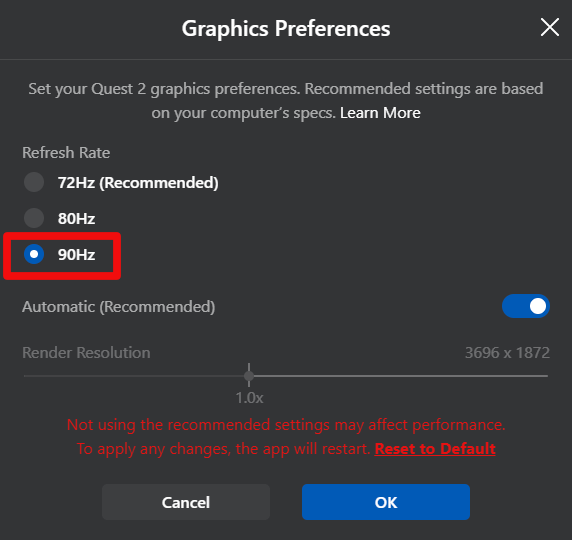 You will need to tune the application to align with your network and PC capabilities. I like to turn everything to the max settings try my game and then back the settings off until I find a good balance between looks and performance. Running everything on their highest settings is a fantastic experience, but requires some very beefy hardware in both your computer and network. Dropped frames and lagging game play tend to mean that you need to lower the graphics settings in your game. Fuzzy video, black screens, and lockups are usually related to the bitrate of your Wi-Fi which require you to tune Virtual Desktop settings.