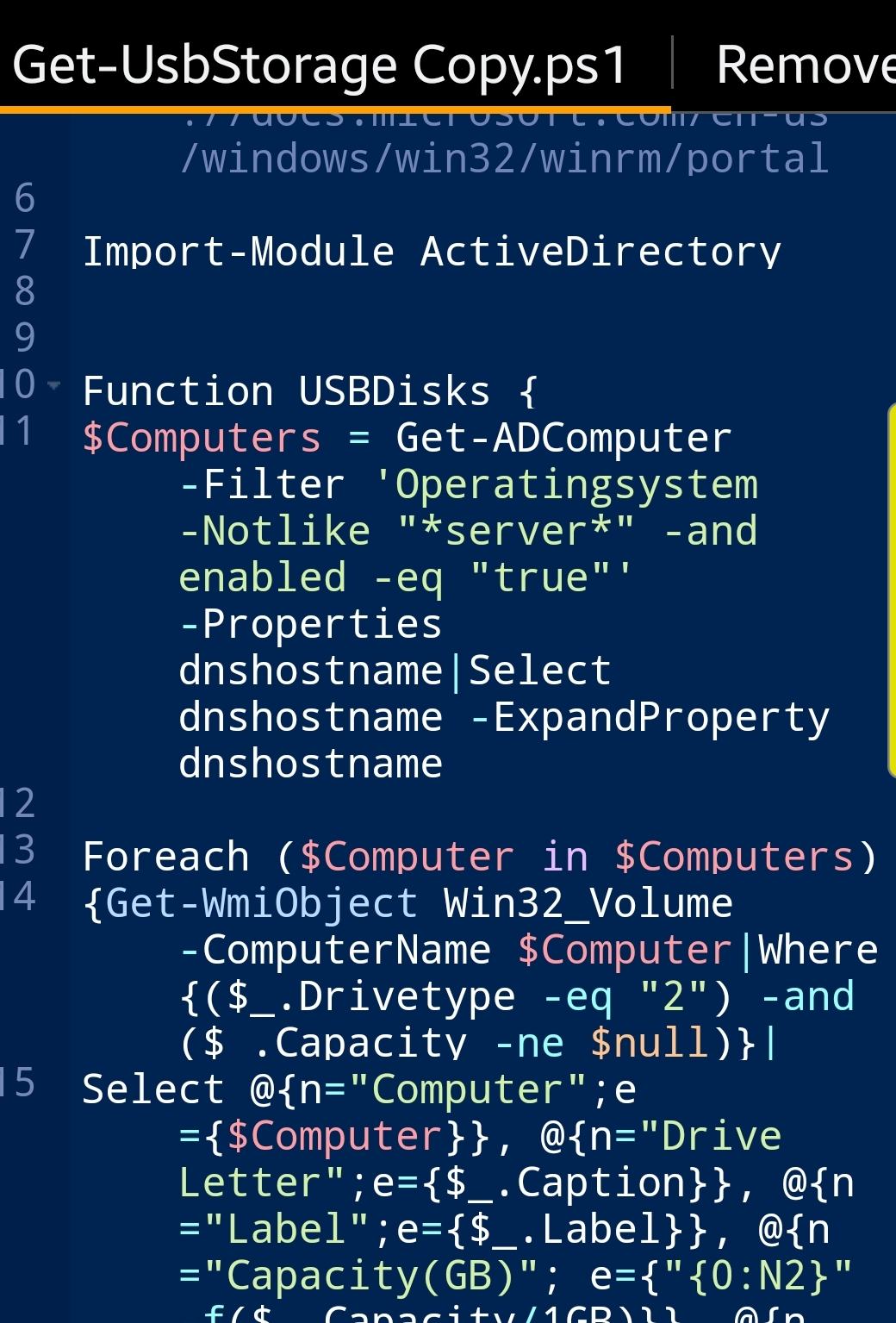 I’m sure you made a test OU while you were working out the best option for your situation, but if you are disabling access for security reasons you’ll need a report. There are a few ways that you could go about getting the data. I like PowerShell. The code below will search your domain computers for USB storage. You should aware that savy users can use online tools to fool detection. As always, use at your own risk.