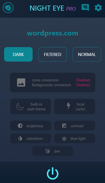 It couldn’t be any easier to use. Open the extension store in whatever browser and search for Night Eye. Install it and turn it on by clicking its icon in your browser’s toolbar. That’s it. If you don’t know how to get into your browser’s extension store just head over to their site and click the matching icon on their homepage. They will send you to the right spot. There are a handful of settings you can adjust to your preferences, but you probably don’t need to. There’s also a whitelist (no pun intended) for anything you don’t want converted.
