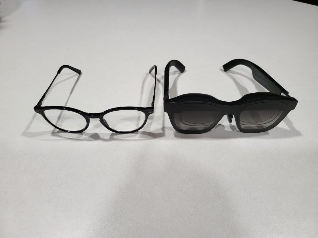 The AR glasses frames are thicker in every way, but still smaller than I expected.
