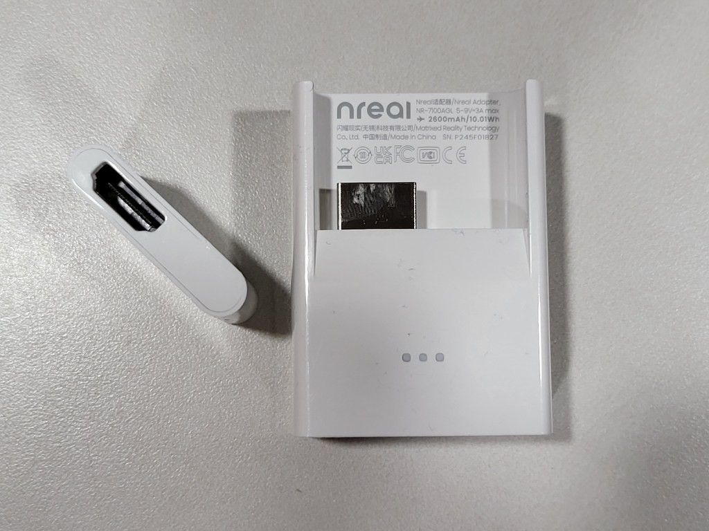 If you want to use them with an iPhone or other systems that need HDMI, you are going to need some adapters. Nreal makes a USB-C to HDMI adapter that is available for purchase separately, or as a bundle. The sixty-dollar adapter is powered by a built-in rechargeable battery to run the glasses since HDMI doesn’t typically include power distribution. I’ve used the adapter to connect the Airs to my iPhone, iPad, Switch, Xbox, and PlayStation without issue. The adapter is designed specifically to work with Apple’s Lightning to HDMI adapter, which you’ll also need to purchase separately.