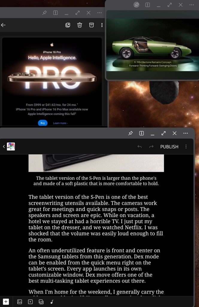 An often underutilized feature is front and center on the Samsung tablets from this generation. Dex mode can be enabled from the quick menu right on the tablet’s screen. Every app launches in its own customizable window. Dex move offers one of the best multi-tasking tablet experiences out there.