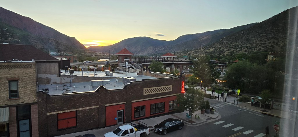 In addition to the driving experience, the city of Glenwood Springs offers a lot of entertainment options. We stayed at the Maxwell Anderson Hotel. The room featured twelve-foot-tall ceilings and arched windows along one wall. They had the most spectacular mountain views. We spent a fair amount of time just hanging out in the room watching the views. The hotel’s restaurant offered great food. It also features a brewery that made some tasty beer. I had one every day after we had finished driving up and down the canyon roads.
