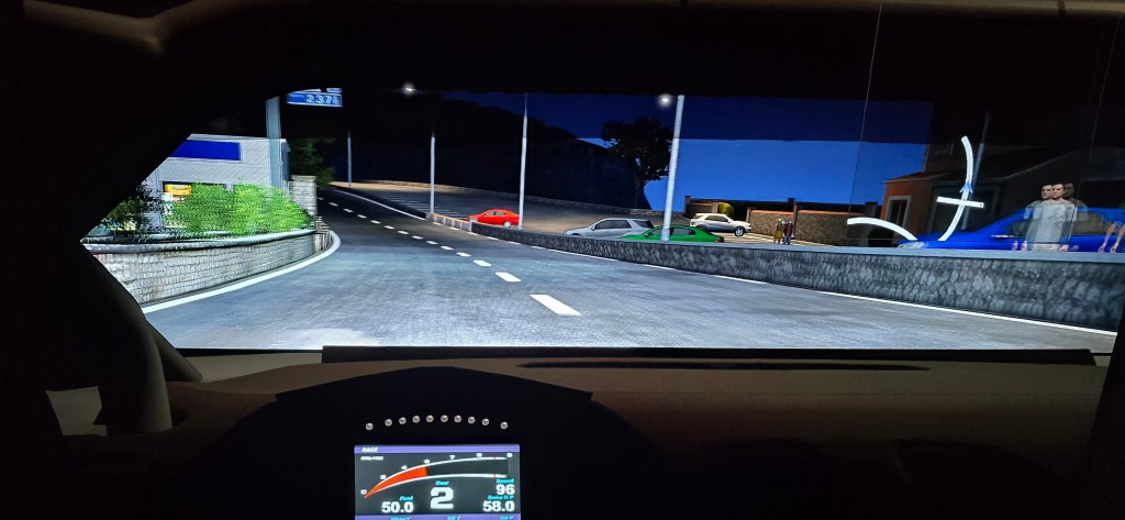 The light car is super easy to maneuver in almost any situation. There’s load of grip and an active anti-body roll that keeps everything in shape during high mass maneuvers. The traction control algorithm is helpful in tricky situations. Both can be turned off by pressing a button to get a “rawer” driving feel.