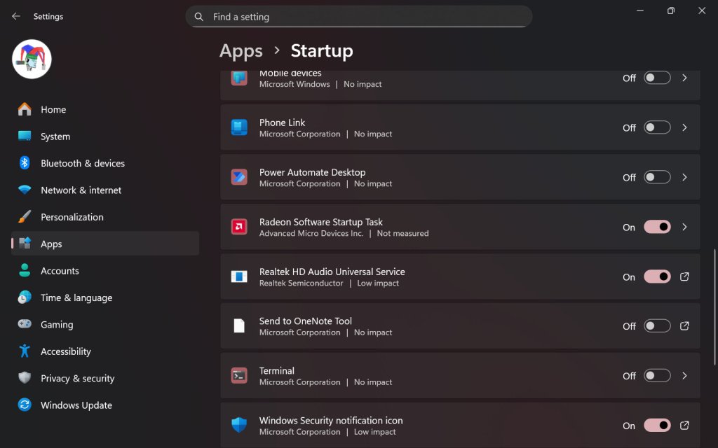 On my Legion Go, I disable most of the start-up apps. It helps conserve CPU cycles, RAM, and disk I/O for the games. Go to Settings-> Apps -> Startup. I only leave three apps toggled on. The Radeon Software Startup Task, Realtek HD Audio Universal Service, and the Windows Security notification icon.