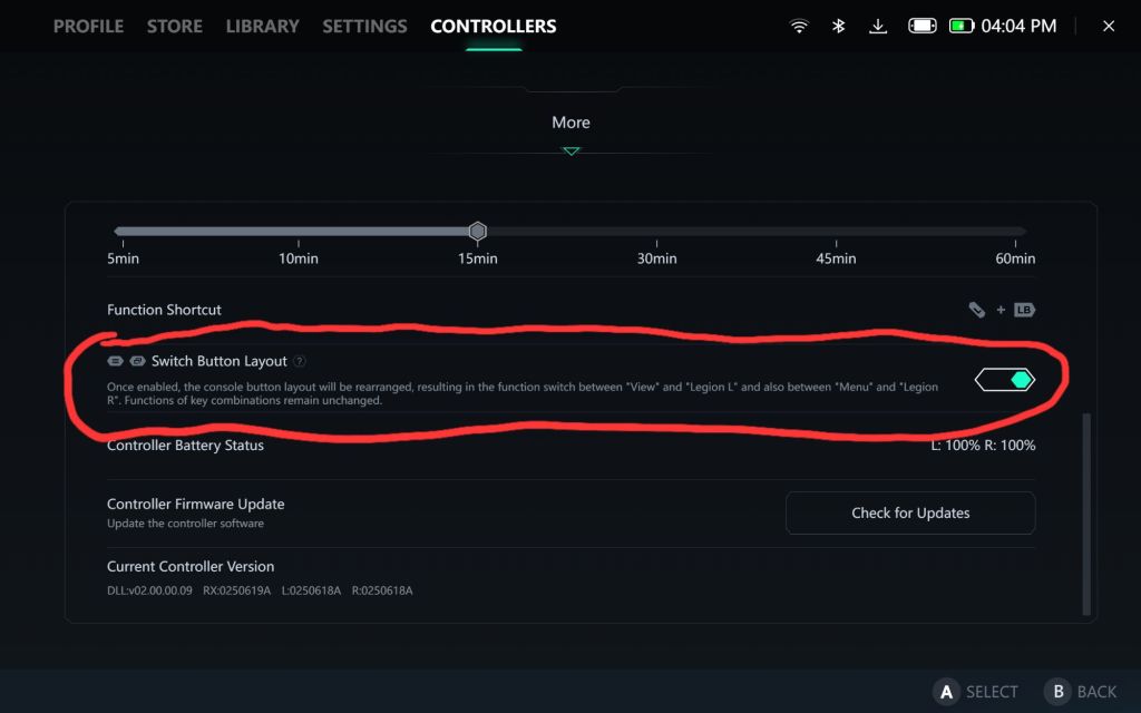 There is an option to swap their functions with the Legion Space and Quick Control menu buttons. Open Legion Space and go to Controllers, then scroll to More. Scroll down the page and flip the toggle to swap the buttons.