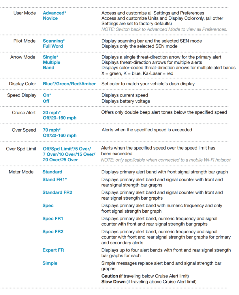 There are a lot of settings that control the receivers themselves. Things like which one is active when, how sensitive they are to the different radar frequencies, that type of thing. I left them on automatic. You can change the alert tones, set speed limits, change the look of the screen’s various messages, and more. It is a little over-whelming at first, I left most of the settings on automatic.