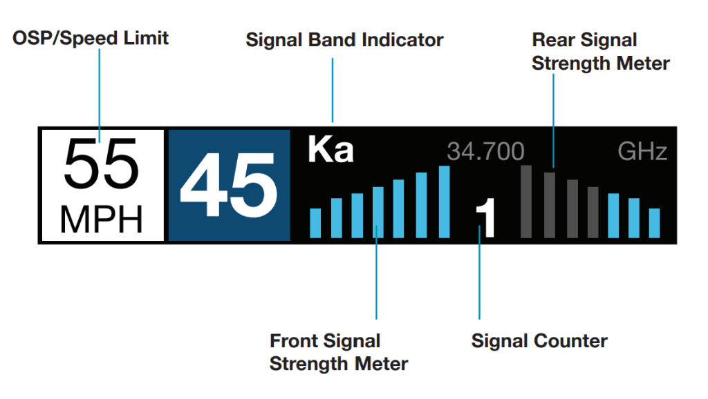 There are multiple radio sensors in the 360c’s chassis. Its brain tracks which one gets hit by the radar gun’s pulse first. The detector uses that information to calculate which direction the hit came from. It also works out how strong (far away) the signal was. A directional arrow on the screen tells you where to look. Bar graphs on the screen show you how much energy the signal carried across each sensor.