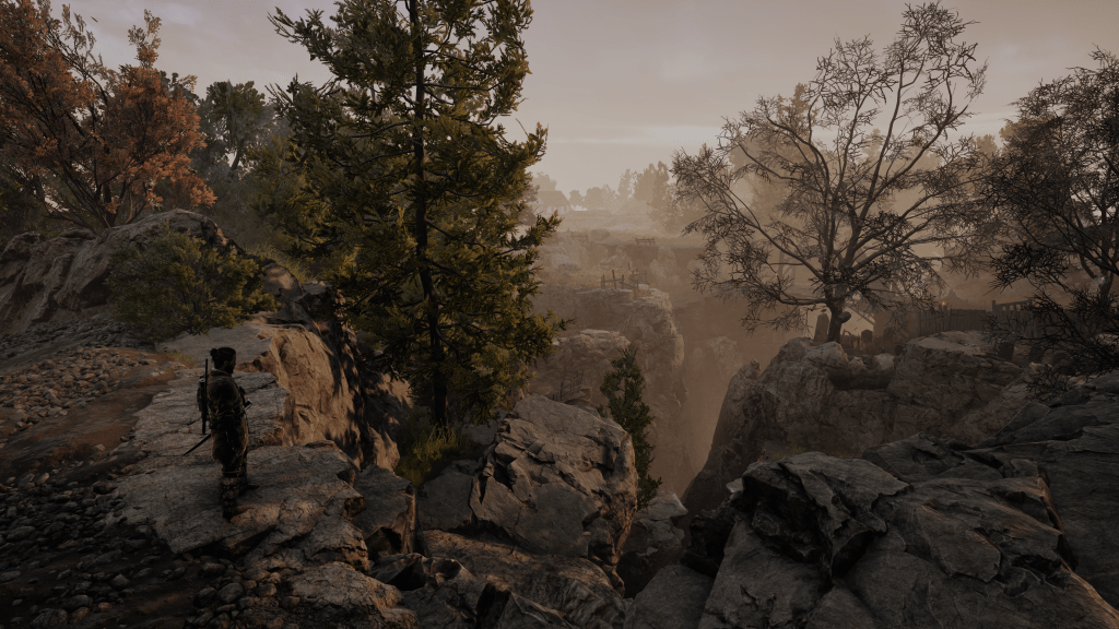 The world isn’t open, but it’s not on rails either. Traveling, navigating, maneuvering, looting, and unlocking will be familiar to anyone that has played the modern Tomb Raider series. Down to having campfires that you save, upgrade, and fast travel from sprinkled all over the map. The classic adventure game mobility methods are all featured. Rope climbing, mantling, sidling, ducking, jumping, grappling, and eventually fast traveling get you around the game’s world.