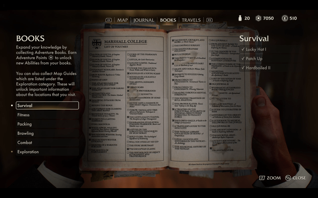 The rest of the game is straight out of the movies. Follow the clues to figure out what is happening. The Great Circle is billed as an RPG. I tended to complete all of the side quests, and missions for each geographic area. Then I would advance the main quest line causing the game to unlock and move play to the next geographic region. Playing this way made the experience feel much more chronological and linear than the back and forth travel that often occurs in RPGs.