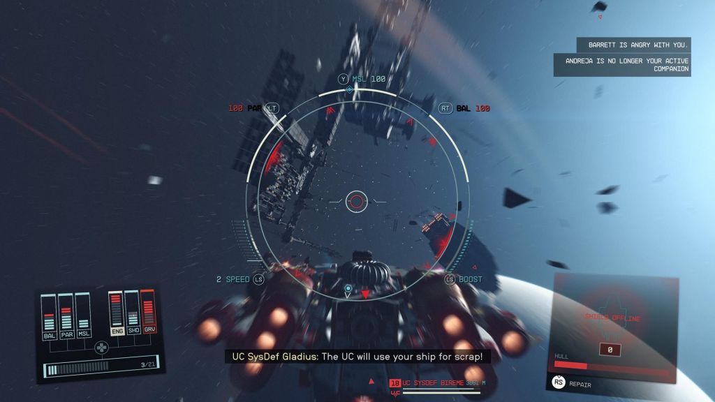 I’m about forty hours into this Starfield run. In that time, I’ve mastered the game’s combat mechanics for the character and ship. Fights in space or on the ground don’t make me sweat anymore. I have completed a little more than half of the main story. I’ve finished most of the Ryujin corporate faction missions. I’ve also turned in a lot of bounties and finished whole side-story arcs. I’m a level 20, with an upgraded ship and enough guns to blast my way out of anything.