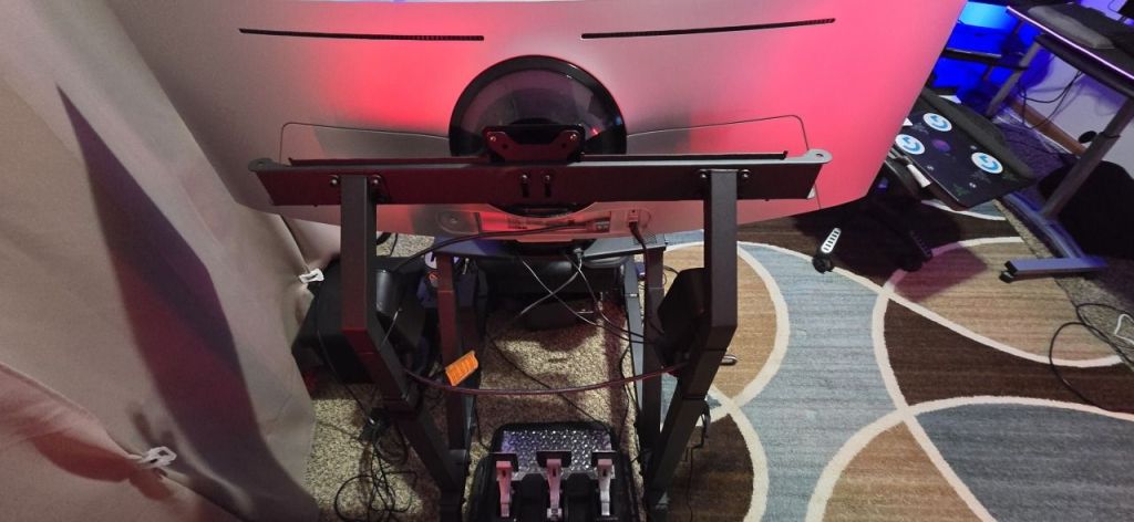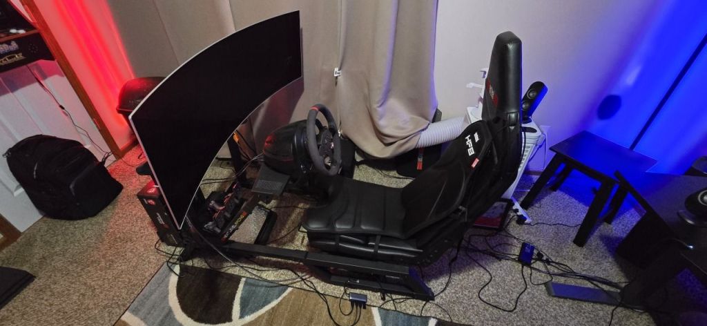 The F-GT is smaller than other full cockpits, but it is still a big piece of furniture. You need a dedicated space about the size of a couch for this thing to live in. I went with a 49″ ultrawide monitor instead of a three-screen setup to save even more space. It’s still huge.